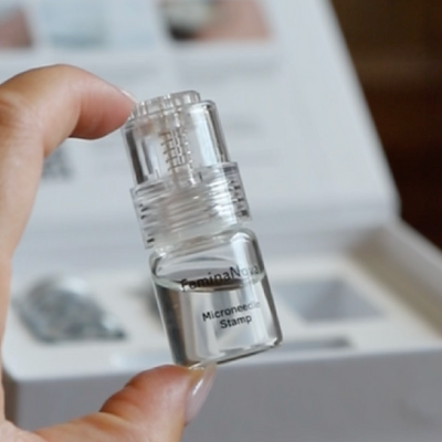 Twist open the Micro-Infusion device and fill with one ampule of serum.